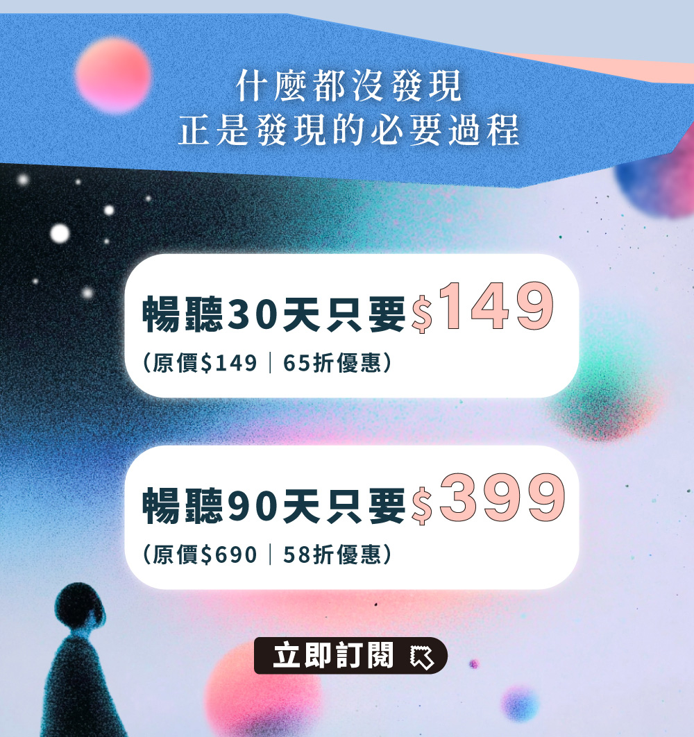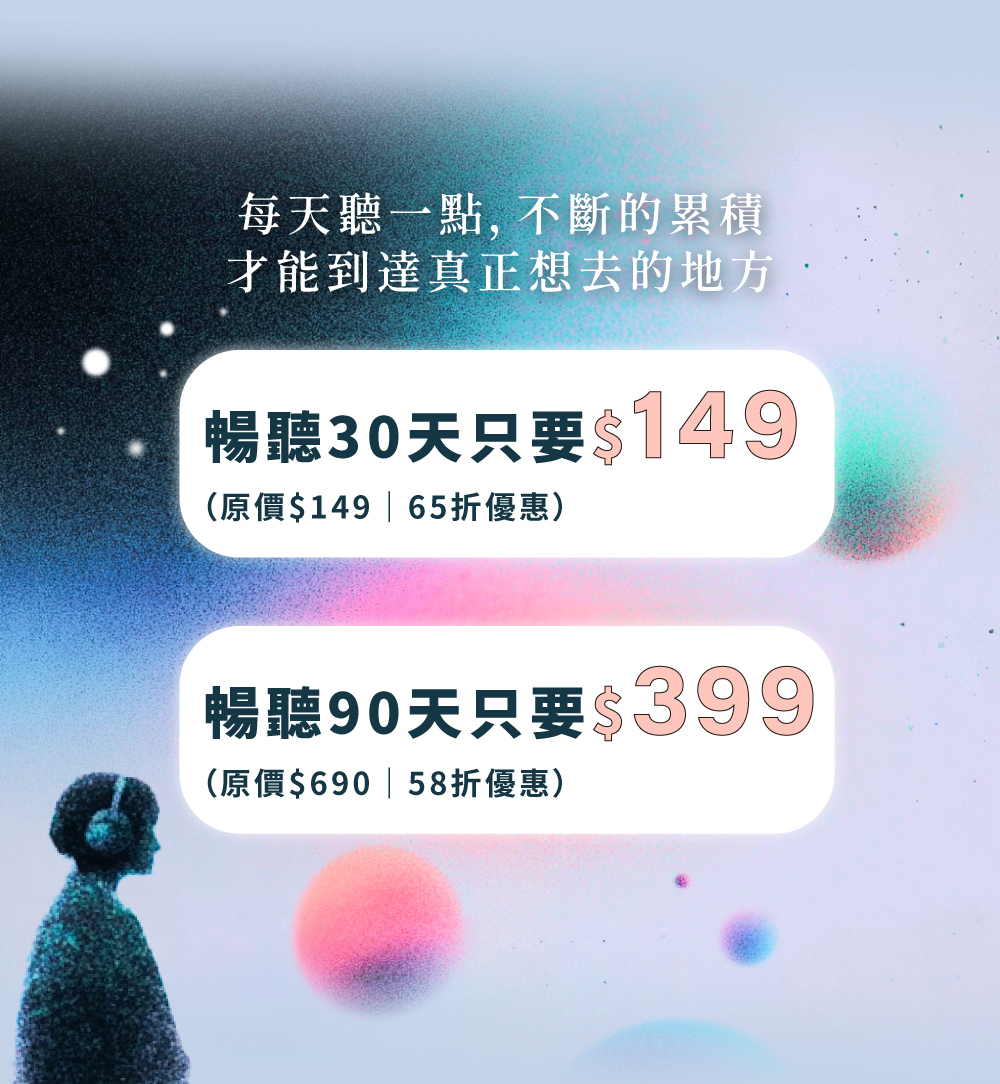 - 訂閱會員可聆聽有標示〔訂閱〕之有聲書及Podcast節目;標示〔單購〕之內容因版權限制,須另外付費購買。