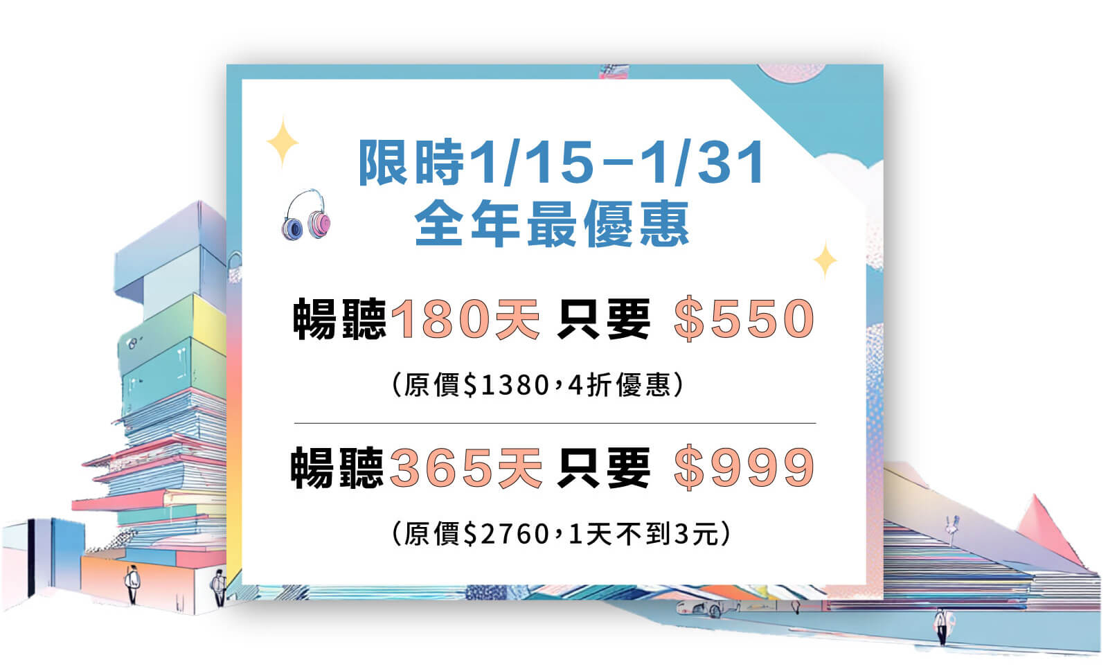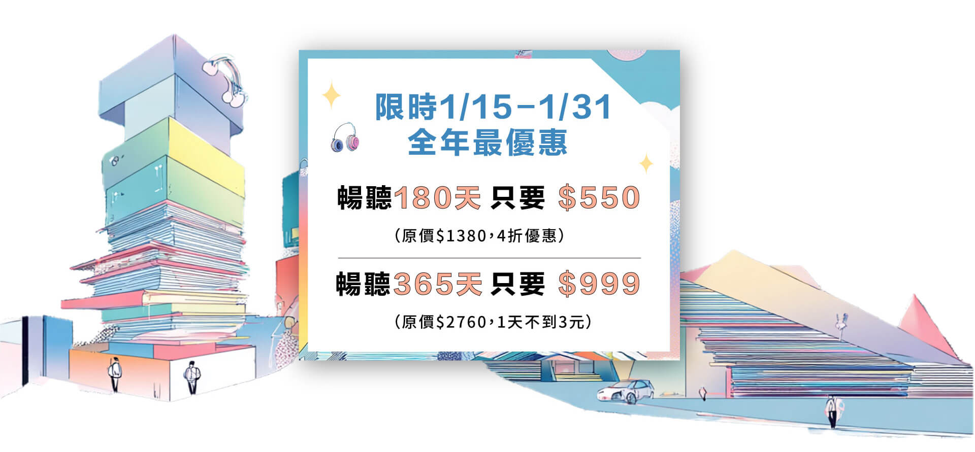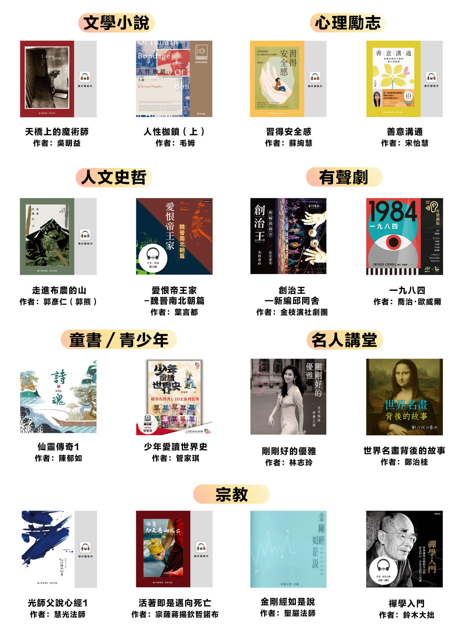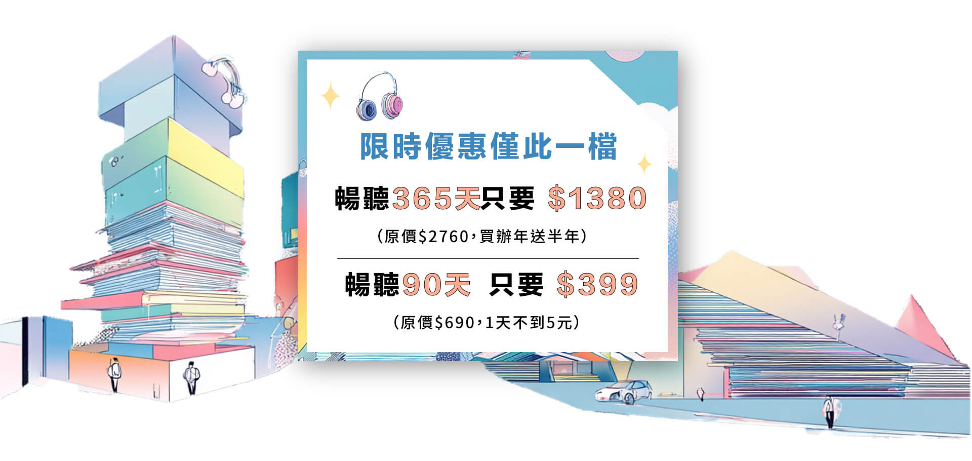 - 升級訂閱會員可聆聽有標示〔訂閱〕之有聲書及Podcast節目;標示〔單購〕之內容因版權限制,須另外付費購買。